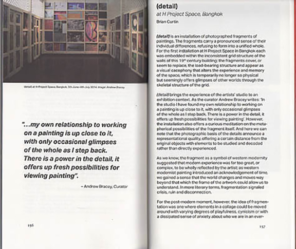 (detail) is a new exhibition curated by Andrew Bracey, which features the work of 118 international artists, who have each selected a close-up from one of their paintings. These details will be printed and displayed together to give both a tantalising glimpse into the artworks, and create a huge, room sized, collage of images. The exhibition will launch at H-Project Space in Bangkok this summer, before touring to Transition Gallery and The Usher Gallery in the UK later this year. The exhibition is supported by Arts Council England and The University of Lincoln.
