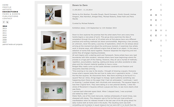 Exhibition dates: 11th September to 11th October 2014 http://www.patrickheide.com/2014_en.php?id=197&year=0 |